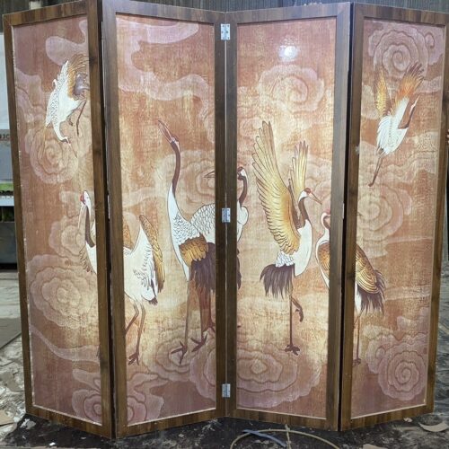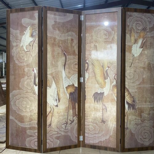 BÌNH PHONG GỖ KHUNG TRANH HỒNG HẠC NÂU TRẦM – BIỂU TƯỢNG THANH CAO VÀ MAY MẮN CHO KHÔNG GIAN SỐNG