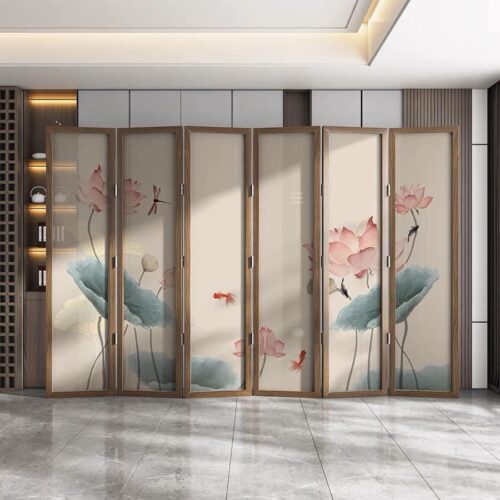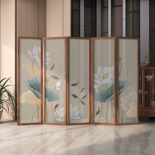 Tấm Bình Phong Ngăn Phòng Khung Gỗ Nền Vải 3D