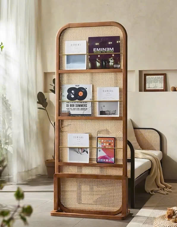 👉 Vách ngăn kèm kệ phối mây (kèm chân) chính là lựa chọn hoàn hảo: ngăn phòng – trưng bày – lưu trữ trong cùng một thiết kế duy nhất, giúp căn phòng nhỏ trở nên gọn gàng và nghệ thuật hơn bao giờ hết!