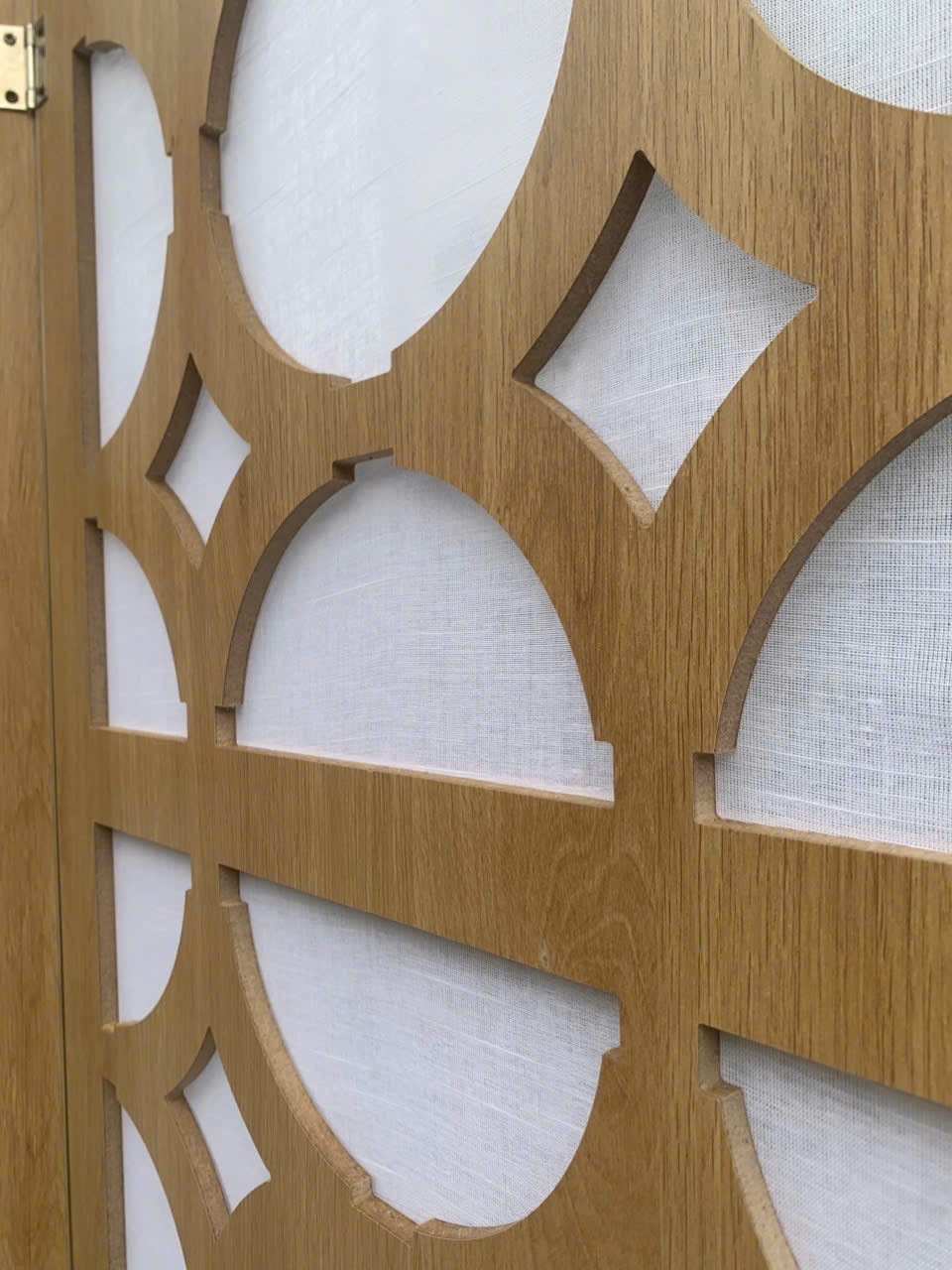 Thiết kế tinh tế giúp vách ngăn vừa đóng vai trò phân chia không gian, vừa như một chi tiết trang trí mang tính nghệ thuật.